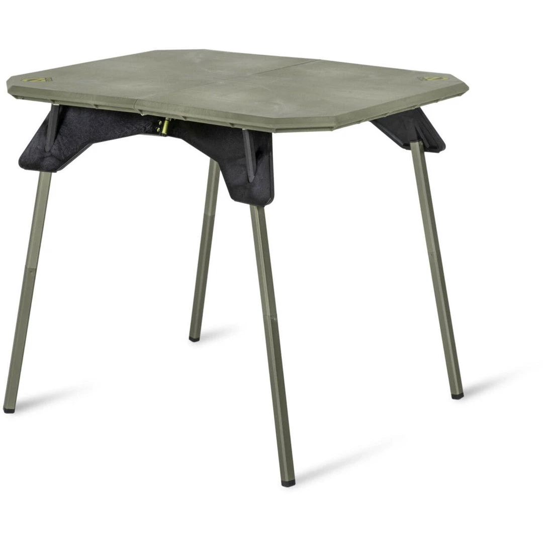 - Aluminum legs are integrated with zinc pole tips for a stable and supportive outdoor camp table.