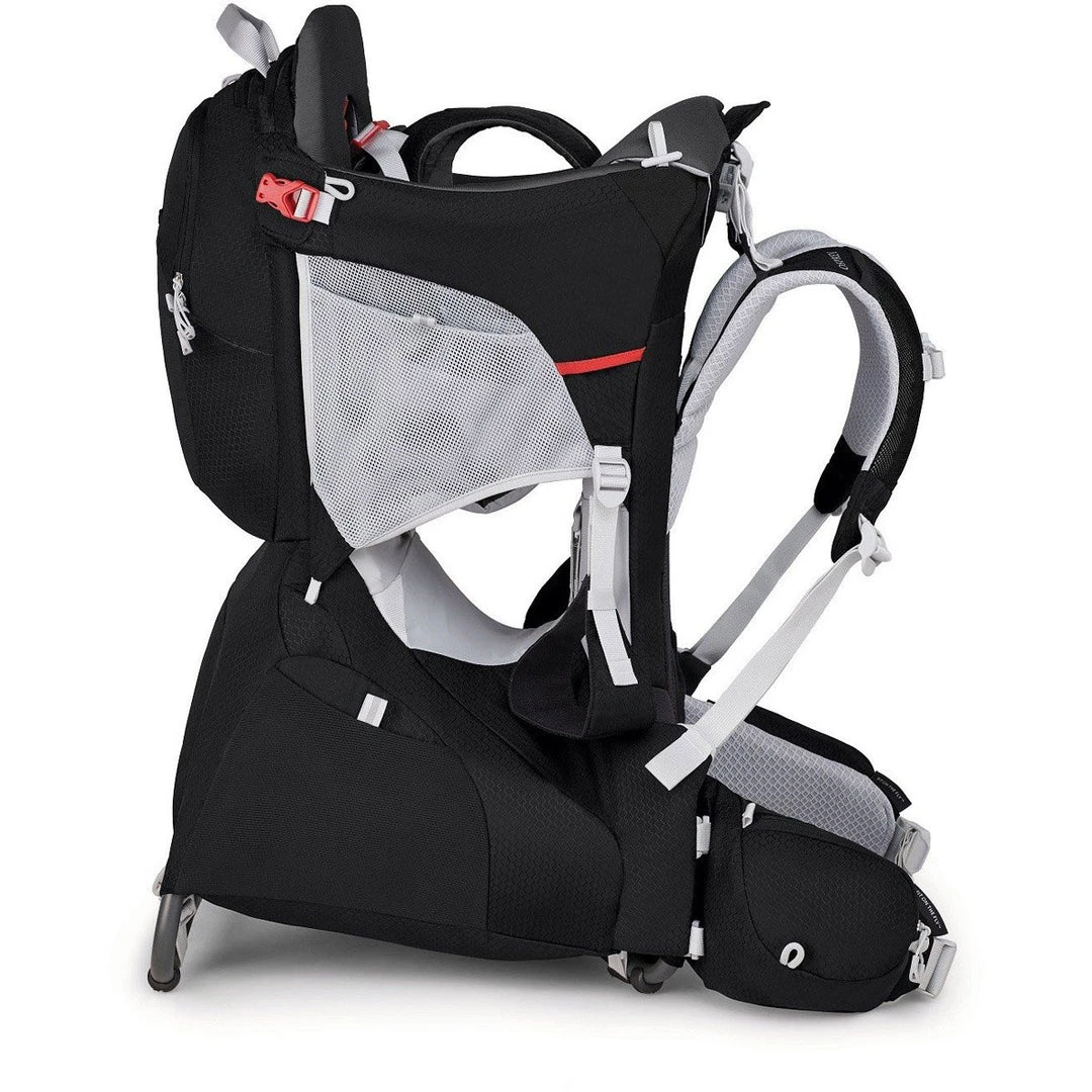 - Collapsible foot bar provides greater maneuverability while the child carrier is on