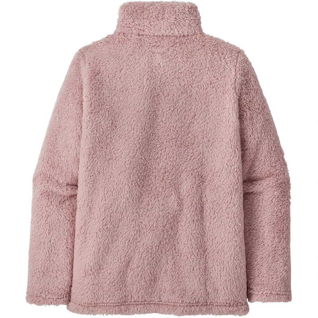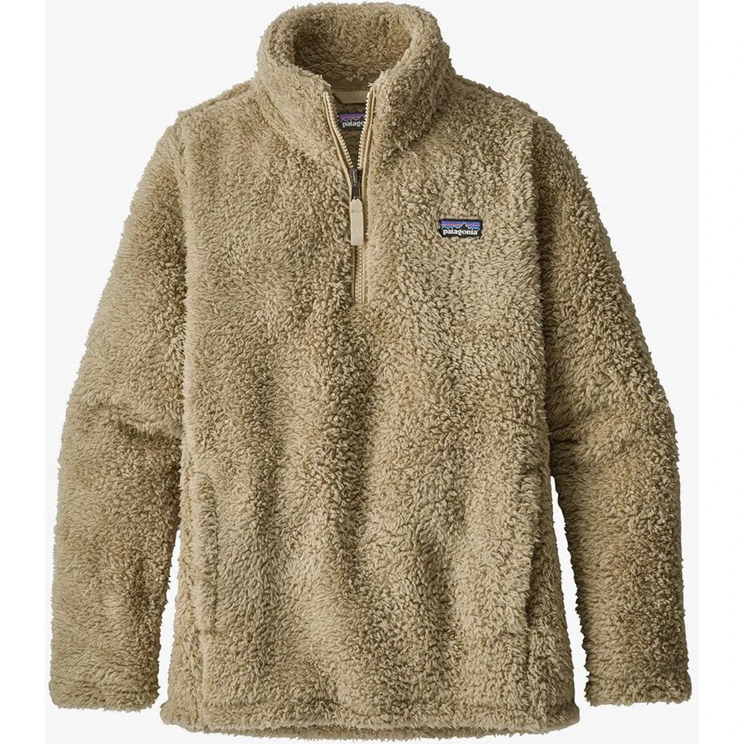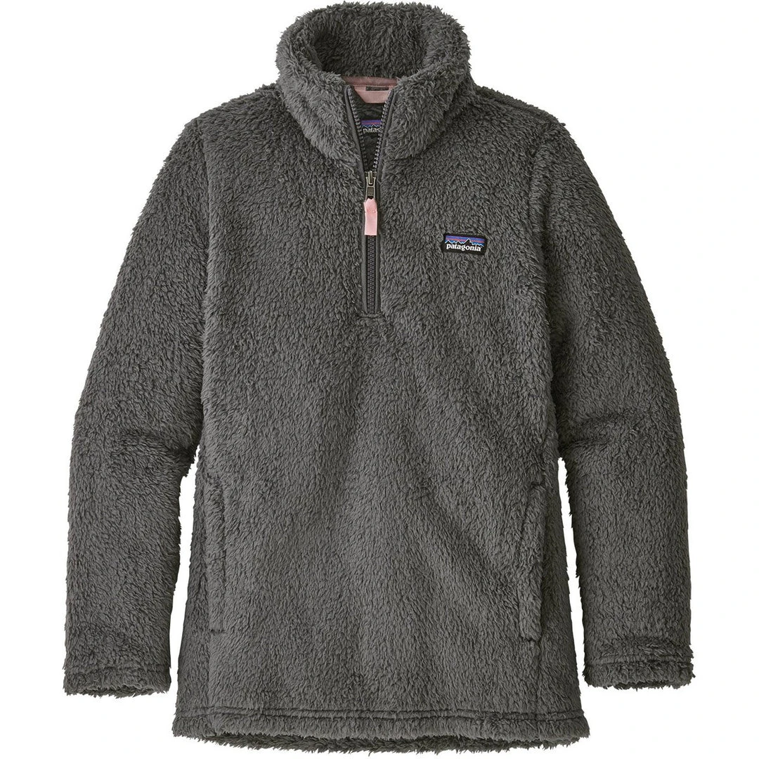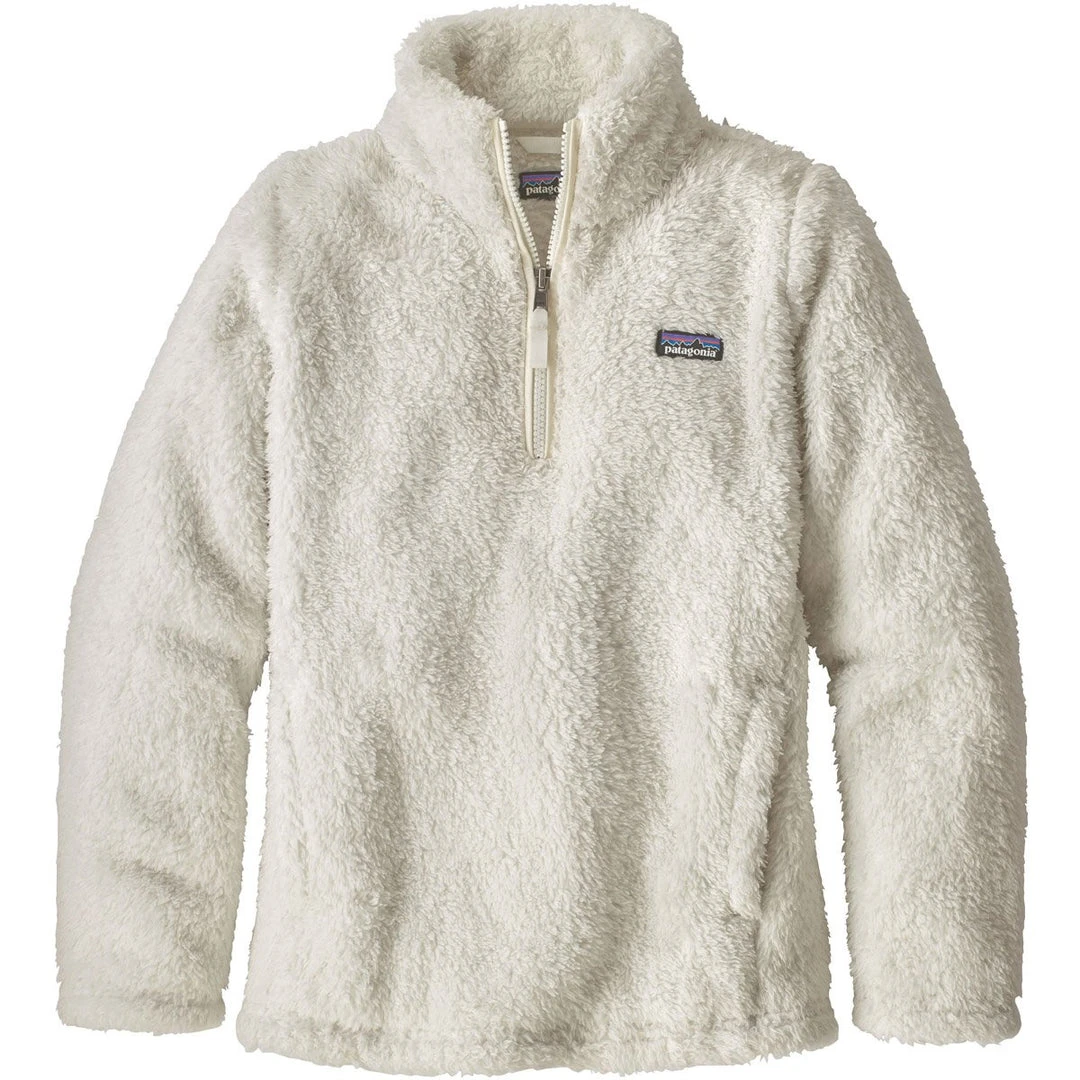 Patagonia’s Girls’ Los Gatos 1/4-Zip fights the chill with comfortable 100% polyester (30% recycled) high-pile, double-faced fleece. The classic quarter-zip design has a doubled fabric collar for neck warmth. Set-in sleeves and princess seams in front provide a feminine silhouette. Kangaroo handwarmer pocket stashes beanie and gloves. Hand-me-down ID label.