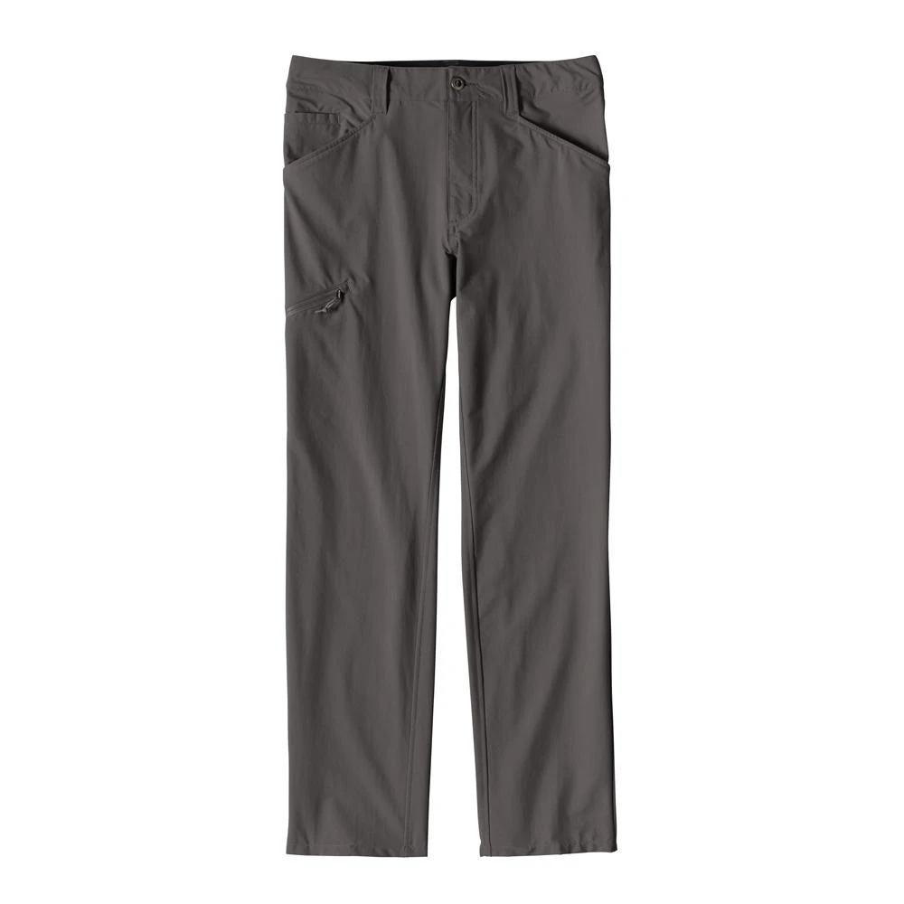 Light and technical, our movement-oriented Quandary Pants are made of a strong, lightweight and quick-drying 94% nylon (62% recycled)/6% spandex fabric with a DWR (durable water repellent) finish to resist moisture. The curved waistband follows the contours of your hips for a personalized fit, while a gusseted crotch and articulation in the knees allow a full range of motion. They have front handwarmer pockets (the right with a coin pocket), two rear pockets and a right-thigh pocket with a security zipper so you know exactly where you put your keys. Details include wide, reinforced belt loops, zip fly with metal web-button closure and 50+ UPF sun protection. Inseam is 32″.