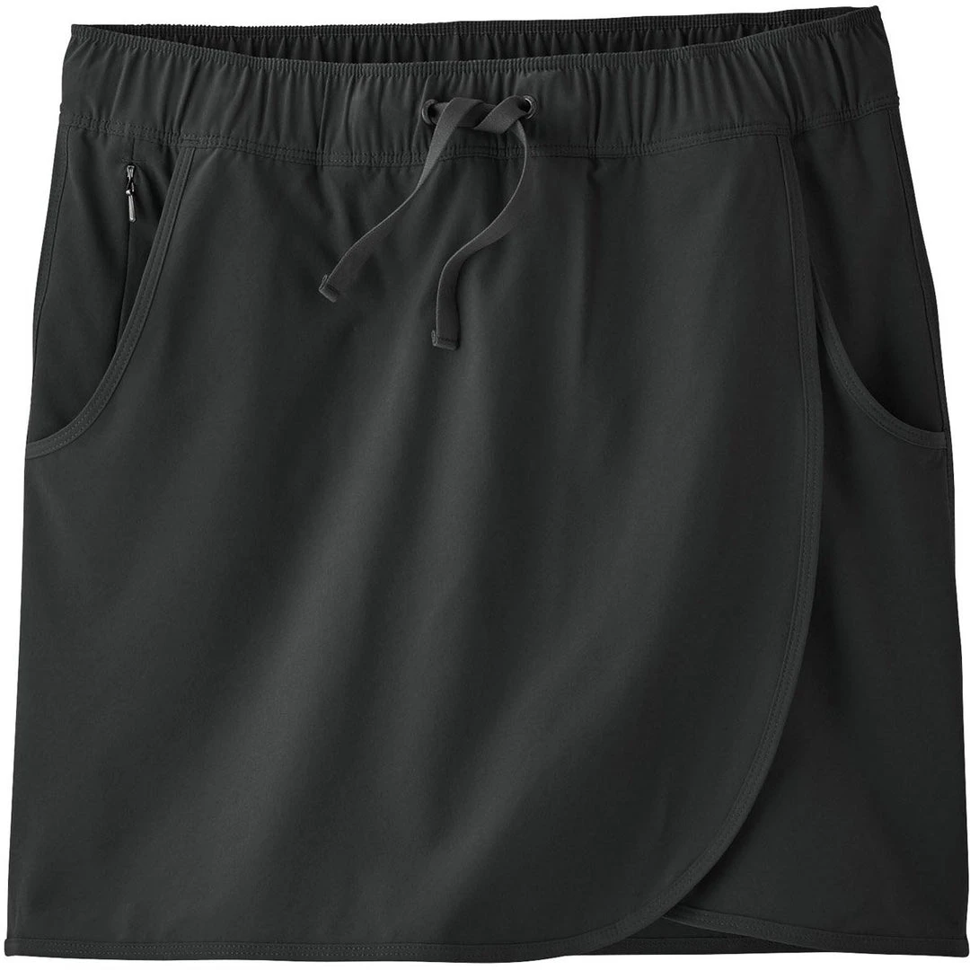 Stretchy recycled polyester/spandex outer skirt has polyester/spandex inner shorts for mobility across a range of activities - Faux-Wrap Front