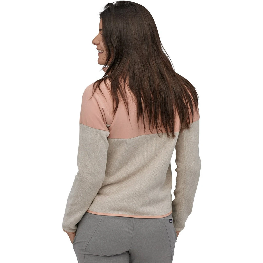 Patagonia’s Lightweight Better Sweater Shelled Jacket has the comfort of 100% recycled polyester fleece with sweater-knit face and fleece interior plus the added protection and performance of a shelled yoke. Made of 87% recycled polyester/13% spandex plain weave with four-way stretch, the shelled yoke provides abrasion resistance and protection against pilling while carrying a pack. The jacket’s full center zip and zippered handwarmer pockets provide warmth and shield against the elements. Spandex binding at cuffs and collar lend a clean finish. Fair Trade Certified sewn.