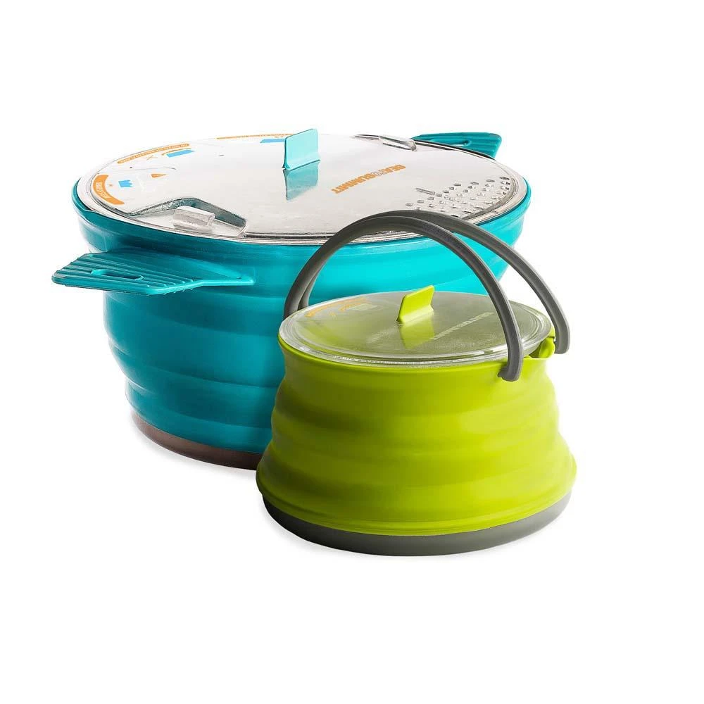 Now, Sea to Summit has extended those concepts to cookware with hard-anodized aluminum bases that allow camp stove cooking. The beauty is how they collapse and nest with our dinnerware and other X cookware, creating the most compact cooking and eating sets you’ll find.