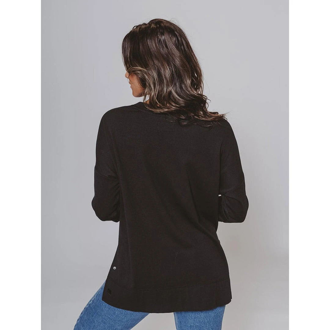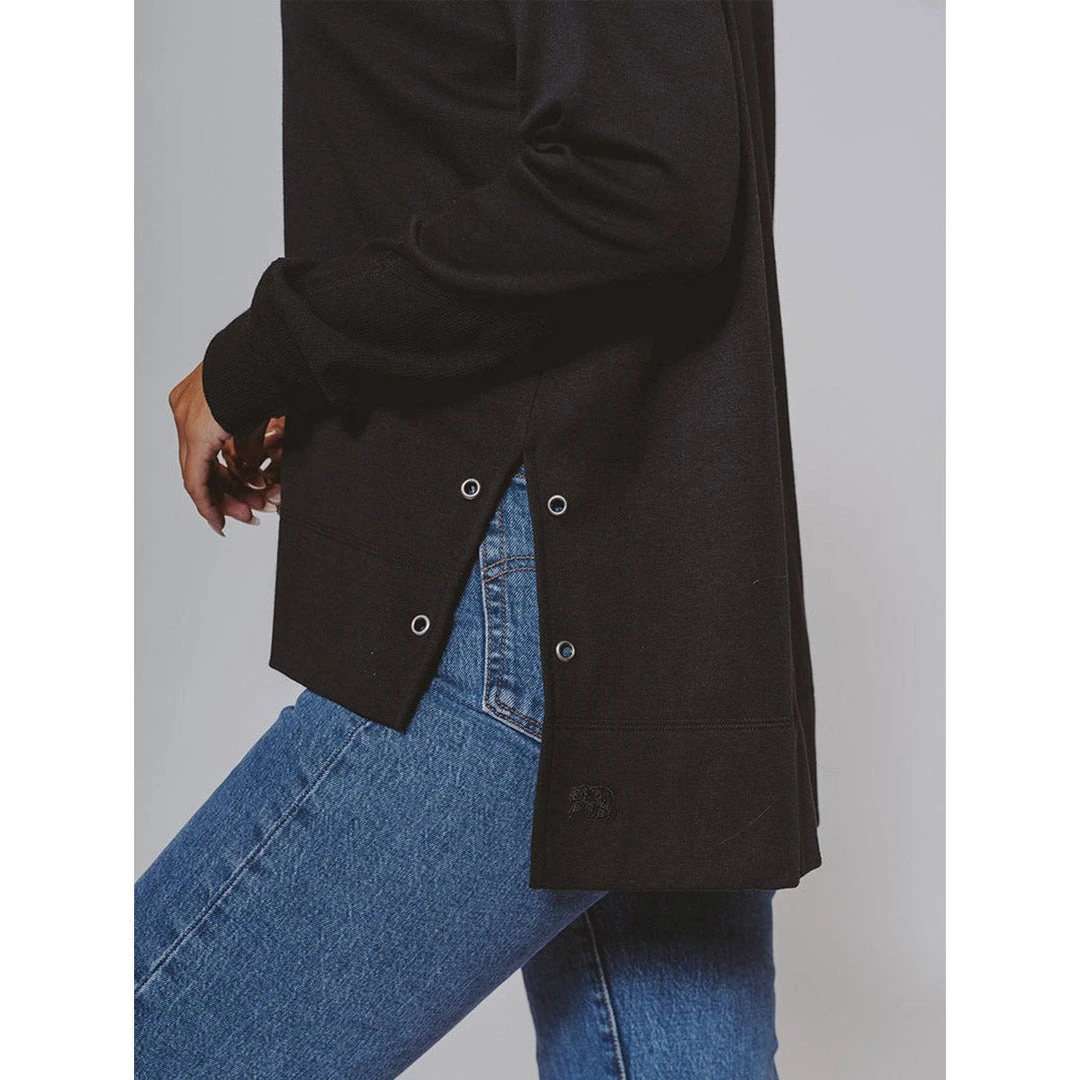 This Puremeso silhouette is a no-brainer and can virtually be worn with anything whether you’re gearing up in our leggings for a hike or you want to dress it up for the office with a skinny jean and a bootie. Style features hi-low split side hem with snap details and sleeve panels.